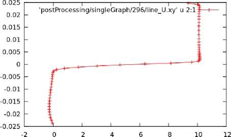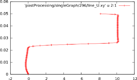 gnuplot> plot "postProcessing/graphUniform/285/line_U.xy" u 2:1