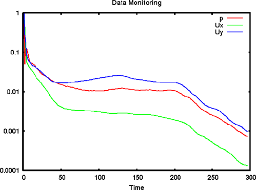 Functions like probes produce a single file of time-value data, suitable for graph plotting. When the function is executed during a simulation, the user may wish to monitor the data live on screen. The foamMonitor script enables this; to discover its functionality, the user run it with the -help option. The help option includes an example of monitoring residuals that we can demonstrate in this section.